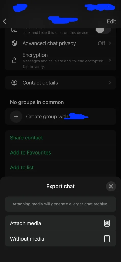 - Scroll down and tap Export Chat